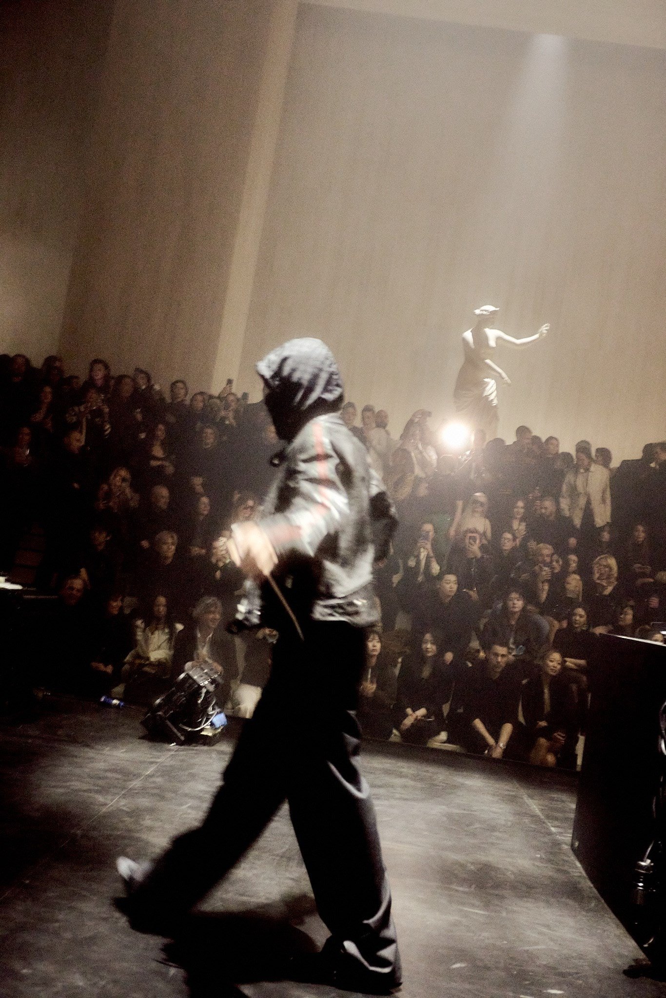 Hosting both the show and the afterparty, the Palazzo delle Scintille was the perfect backdrop for Gucci Primavera. Featuring a series of sculptural marble statues, intentionally selected by Demna, the space was a celebration of the House’s Italian heritage. After the show, the runway was transformed into a space with a stage and dancefloor, ready for guests to enjoy.